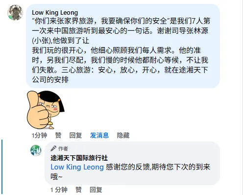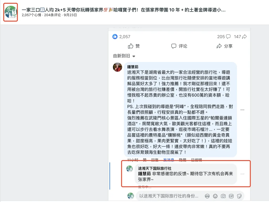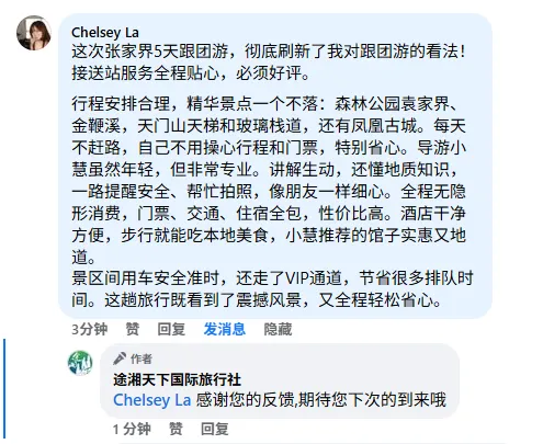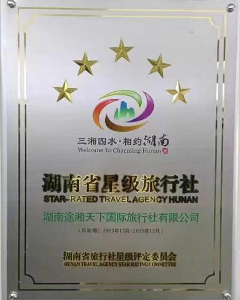 После многолетнего развития компания создала профессиональную и эффективную операционную команду, непрерывно углубляла свою деятельность на рынке туризма провинции Хунань и неизменно сохраняла лидирующие позиции в сфере качества продукции и обслуживания клиентов. В 2023 году компания получила звание «Туристического агентства пяти звезд». В 2024 году общее число обслуженных туристов превысило сто тысяч человек, а объем выручки достиг 180 миллионов юаней.